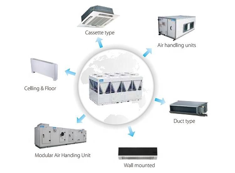 Een van de belangrijkste kenmerken van deze koelmachine is het luchtgekoelde ontwerp, in tegenstelling tot watergekoelde koelmachines, die een aparte koeltoren nodig hebben.de modulaire luchtgekoelde koelmachine kan direct op het dak of buiten een gebouw worden geïnstalleerdDit maakt het een ideale keuze voor gebouwen met beperkte ruimte of voor gebouwen die geen watergekoelde koelkast kunnen bevatten.